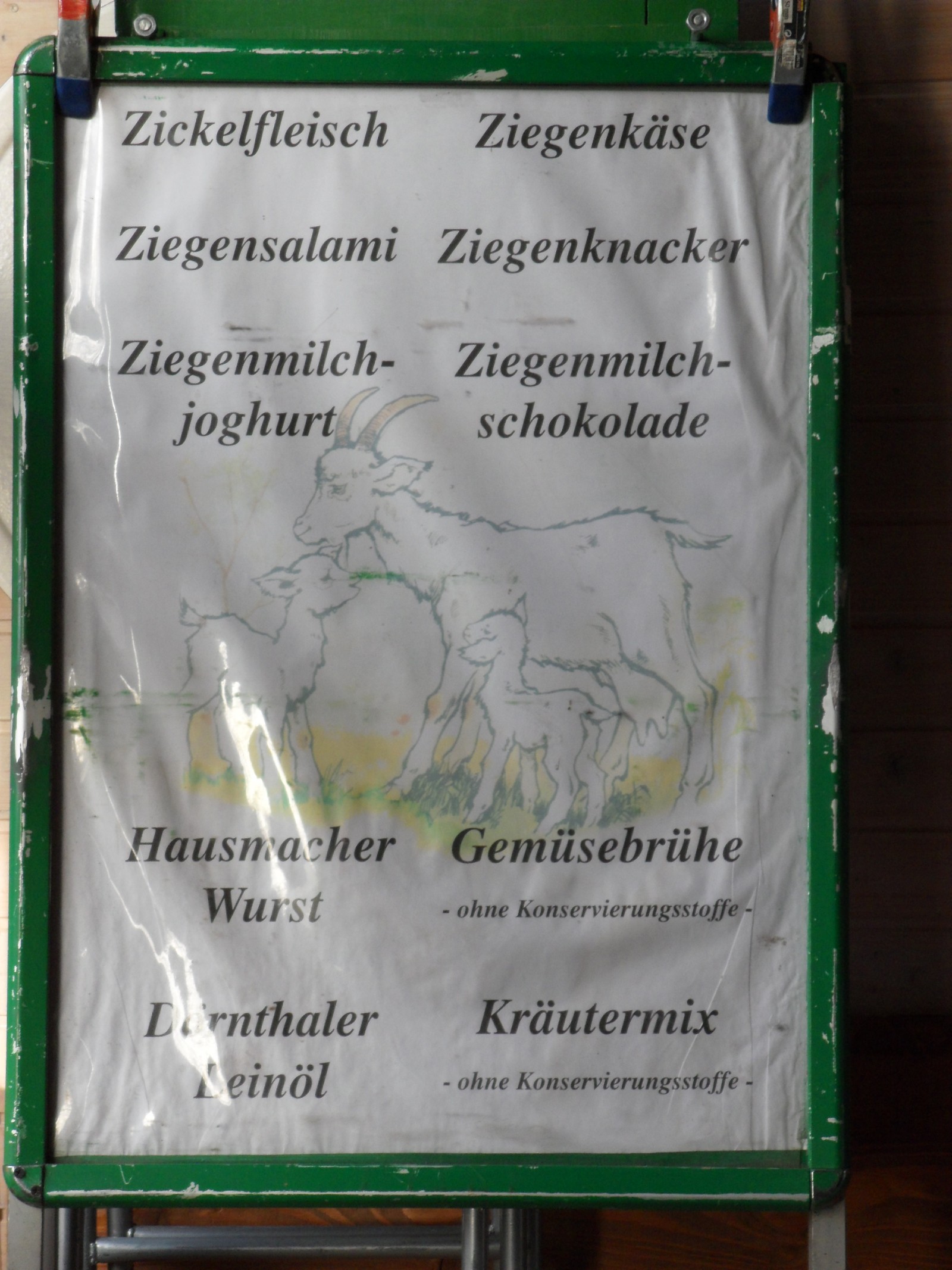 Auf Bestellung gibt es auch Zickelfleisch (gelegentlich) und Ziegenlämmer (lebend oder geschlachtet).
