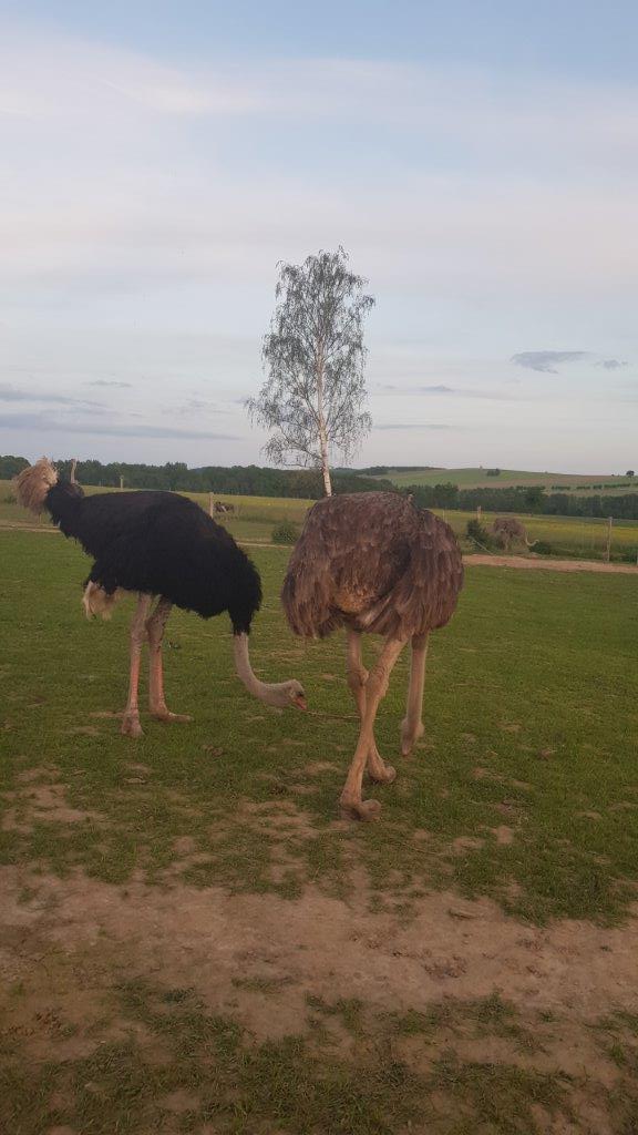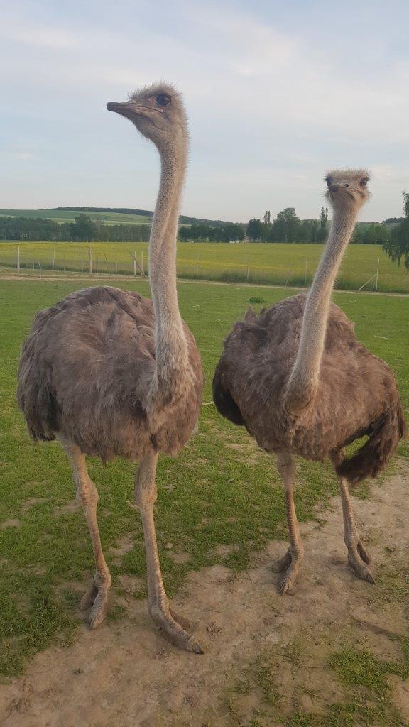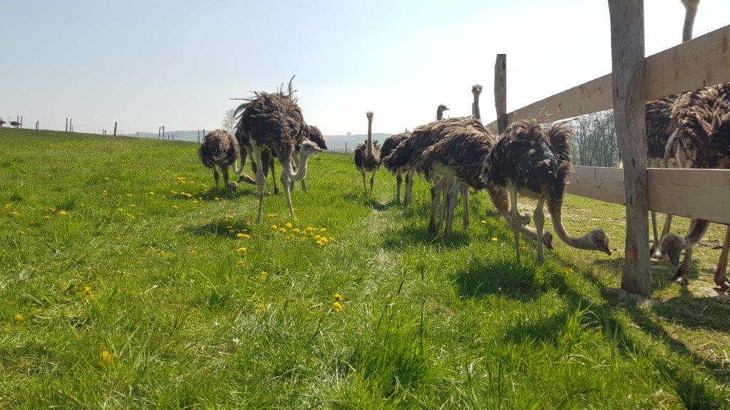 Diplom – Kaufmann Jochen Schumacher aus Mühlheim am Main suchte nach einer neuen beruflichen Herausforderung. Durch Zufall fiel ihm ein Zeitungsartikel über die Haltung von Straußen in die Hände – da wusste er, was sein neues Tätigkeitsfeld werden sollte – eine eigene Straußenfarm. Vier Jahre lang besuchte er insgesamt an die 30 Straußenfarmen in Deutschland, Belgien und Paraguay. In dieser Zeit absolvierte er mehrere Praktika, nahm an Schlacht- sowie Haltungsseminaren teil und las die verschiedensten Publikationen zum Thema Strauße – Haltung, Aufzucht, Fütterung, Verarbeitung etc. Parallel dazu suchte er nach einem Domizil für sein geplantes Vorhaben. In Rheinland-Pfalz war er schon kurz vorm Ziel. Die Unterlagen hatte er bereits zusammen und bei den zuständigen Behörden eingereicht. Doch dann verweigerte ihm die Naturschutzbehörde „Grünes Licht“ bzw. waren deren geforderten Auflagen für Jochen Schumacher nicht leistbar. Er gab auf und die Suche begann von vorn. Bei einem Zwischenstopp auf seiner Reise nach Berlin lernte Schumachers Vater den Vorbesitzer des Rösler-Hofes auf der Ziegeleistraße in Helmsdorf kennen und erfuhr von ihm, dass sein Anwesen zum Verkauf bereitstehe. Der „Weg“ bis zur Hofübernahme 2016 war trotzdem nicht ganz einfach, aber erfolgreich. Im September 2016 zogen die ersten 48 Strauße auf dem Hof mit ein, 12 Jährlinge - gekauft vom Deutschen Züchterverband - folgten im Oktober desselben Jahres.