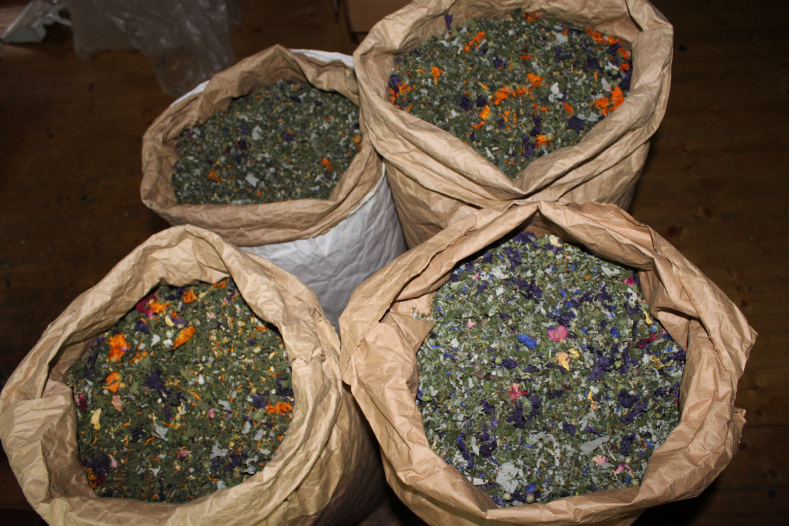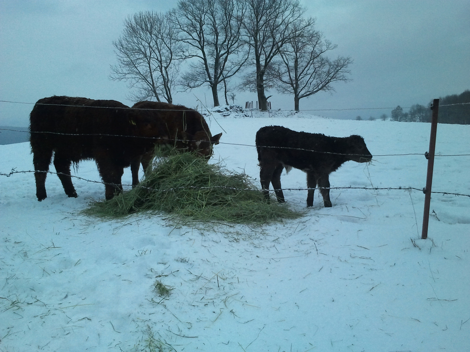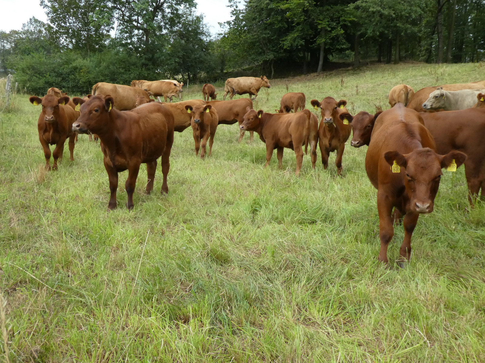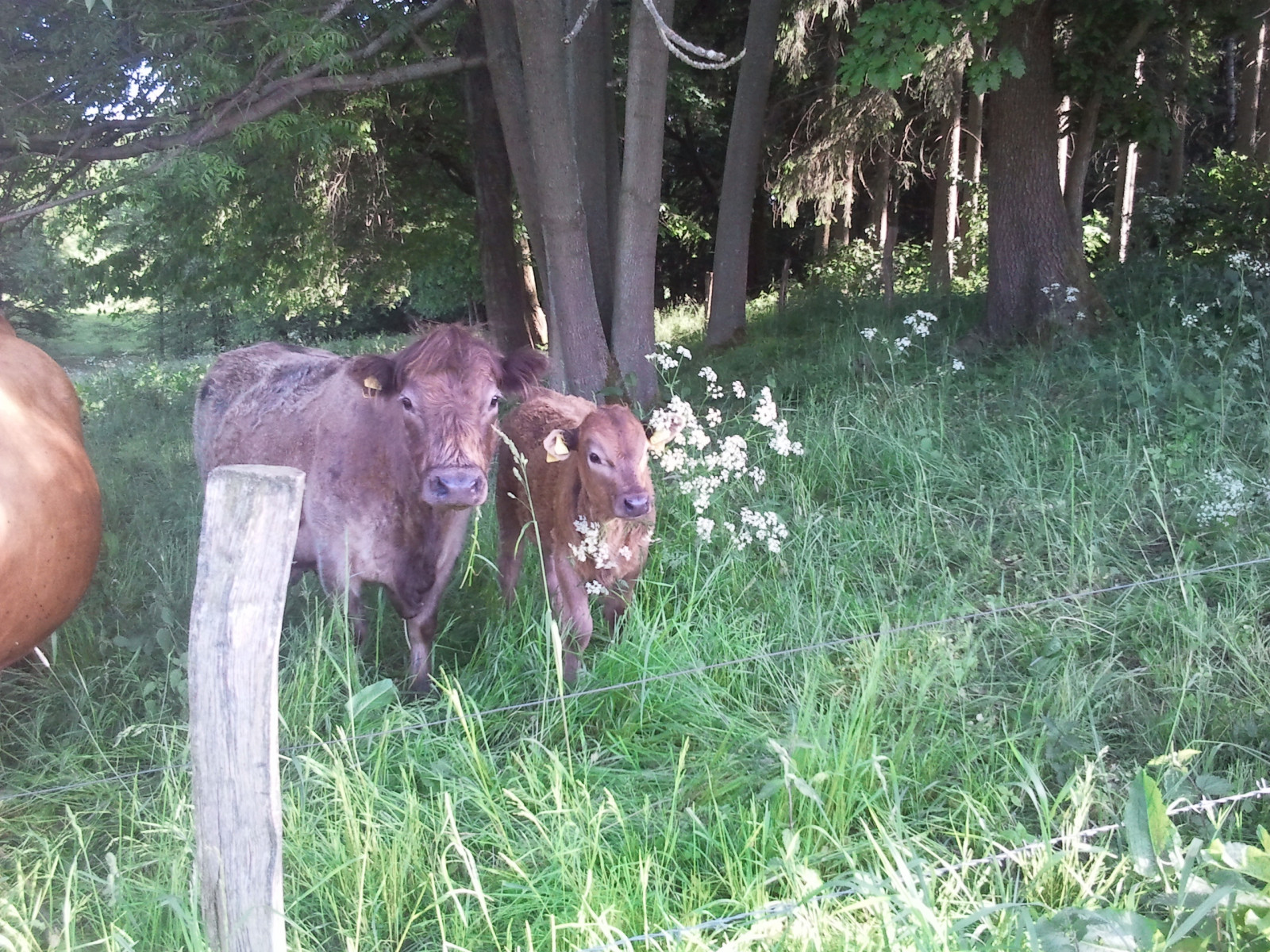 Das Futter für die Tiere kommt weitestgehend von den eigenen und gepachteten Flächen. Selbst geworbenes Heu wird gehäckselt verfüttert. Kunstdünger kommt auf den genutzten Flächen nicht zum Einsatz. Gentechnikfreies Soja beziehen sie vom Mischfutterwerk in Dürrrörsdorf.