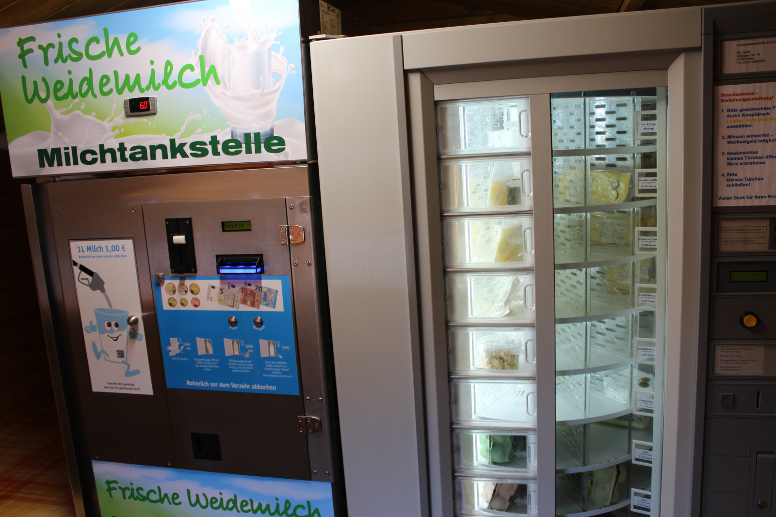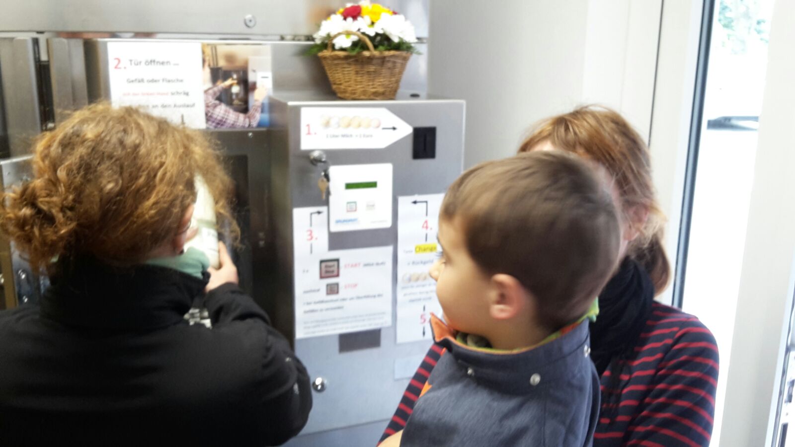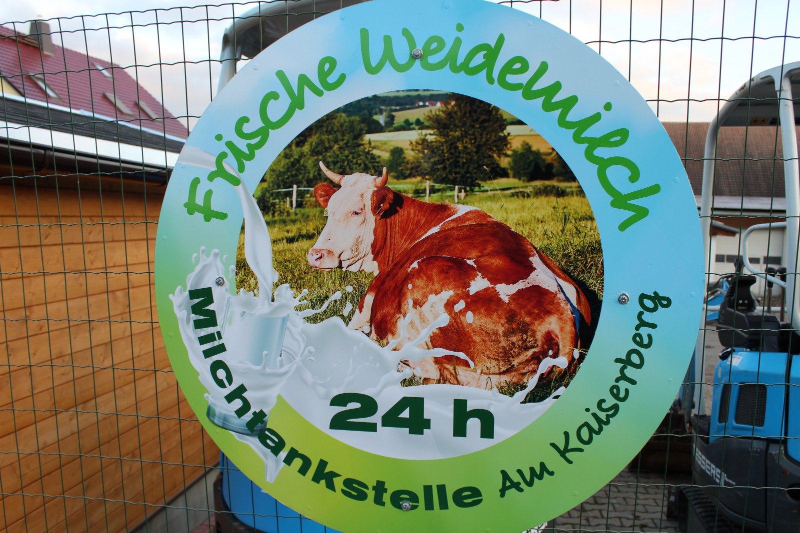 Seit Pfingsten 2016 gibt es die Reinhardtsdorfer „Milchzapfstelle“, an der Milchfreunde aus nah und fern rund um die Uhr 365 Tage im Jahr täglich frisch gemolkene, naturbelassene Rohmilch in mitgebrachte oder bereitstehende Gefäße abfüllen können. Der Liter kostet 1 Euro. eine neue, leere Glasflasche kann man für 50 Cent erwerben und gern auch immer wieder benutzen. 100 -150 Liter Rohmilch gehen derzeit täglich „über den Zapfhahn“, rein rechnerisch arbeiten demnach 3-5 der 500 Kühe der Agrargenossenschaft für die Direktvermarktung.