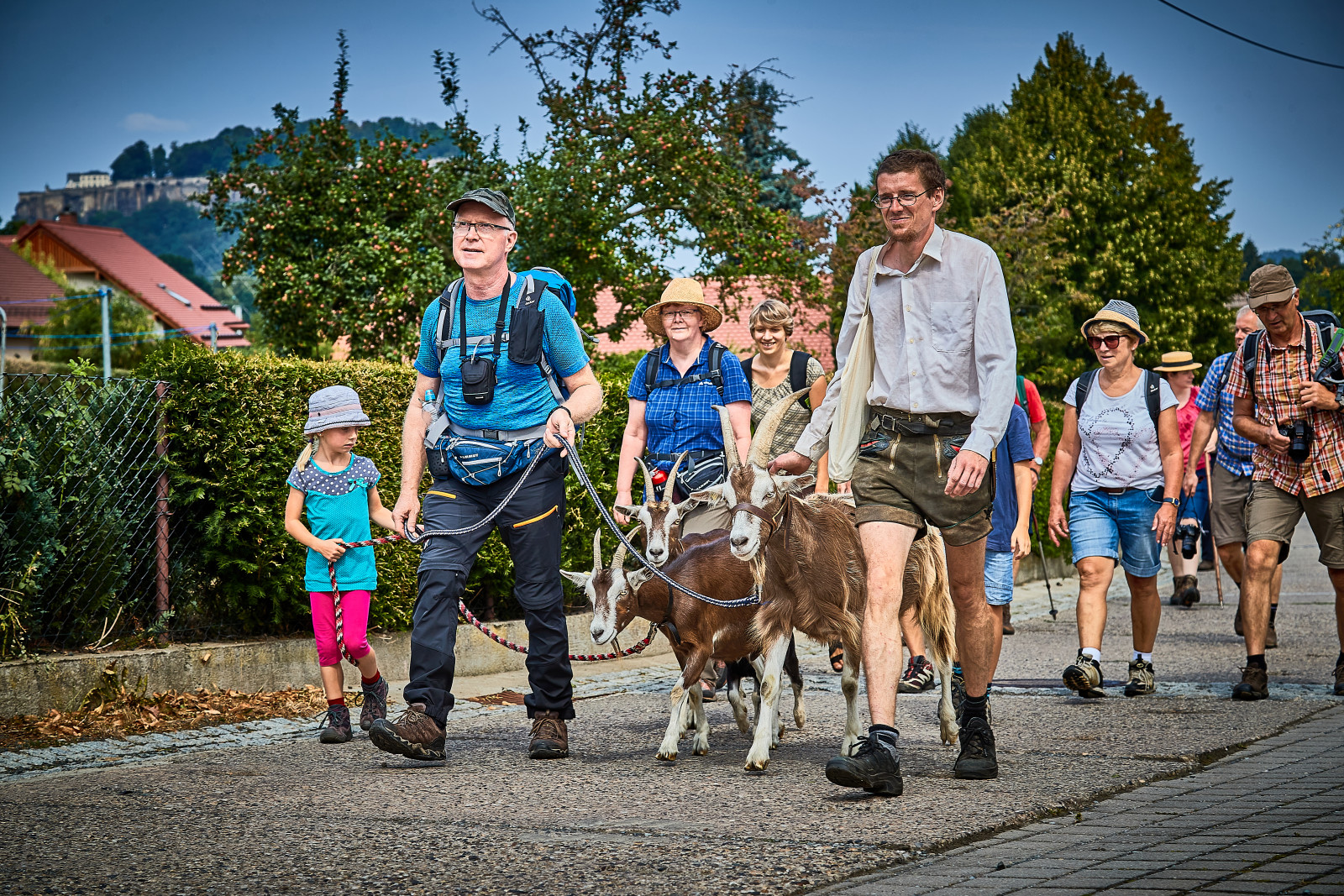 Die Muttertiere, der vom Aussterben bedrohten Nutztierrasse, pflegen von April bis Anfang November die Berghänge unterhalb des Pfaffensteins. Im Frühjahr und Herbst gibt es einen Ziegenauf- bzw. -abtrieb. Die Bockjungtiere pflegen ganzjährig die Elbwiesen und für die Wintermonate werden die weiblichen Tieren ebenfalls auf die Sonnenseite von Königstein (Halbestadt) geführt. Dort bieten Jurten Schutz vor Nässe und Kälte. Um die Vielfältigkeit des Genpools zu erhalten, findet die Herdbuch-Zucht in Zusammenarbeit mit dem Sächsischen Schaf- und Ziegenzuchtverband e. V., TWZ-Züchtern aus der Region sowie der Sächsischen Tierseuchenkasse statt.